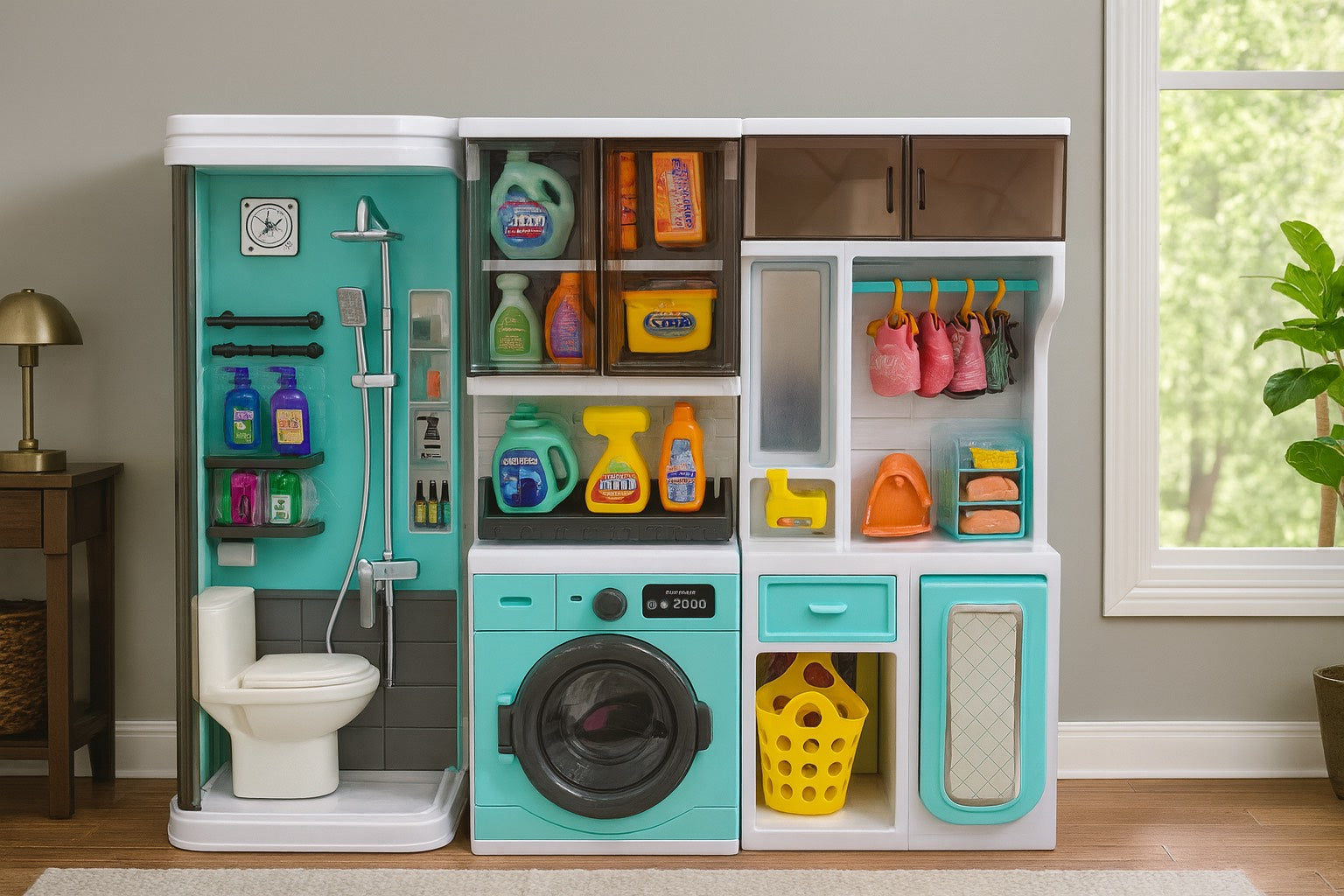 · 🛁 Complete Bathroom Accessories – Includes a shower, bathtub, sink, toilet, and storage shelves for a full pretend-play setup.