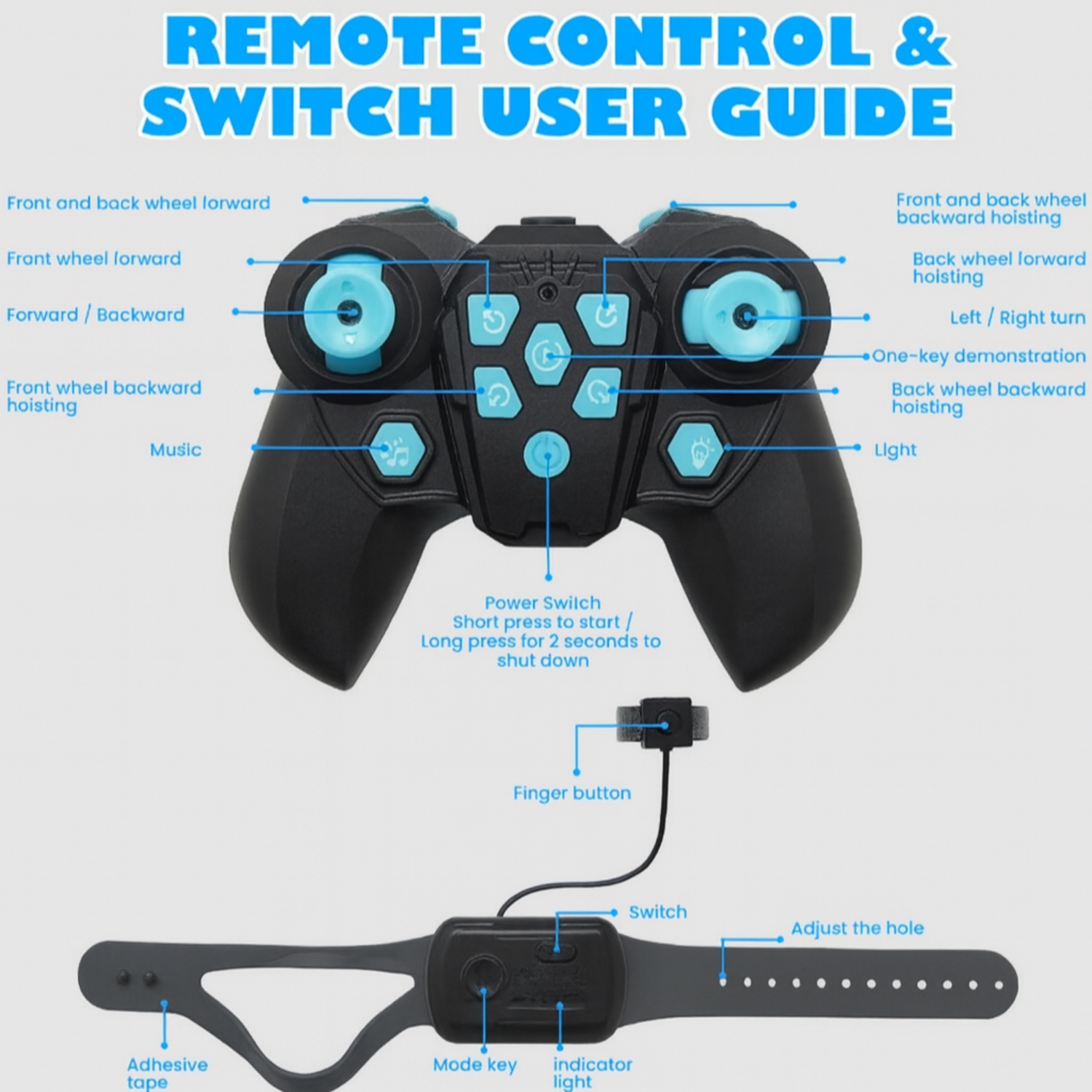 - 【Dual Control Modes】Comes with a handle remote control and a watch remote control. It can forward, backward, turn left, turn right, front hoisting, back hoisting, back wheel forward hoisting, back wheel backward hoisting. We provide stable connection, and produce clear instruction manuals, ensure that kids age 6+ can operate the simple. Best toys for 6 7 8 9 10 11 12 13 14+ year old boys.