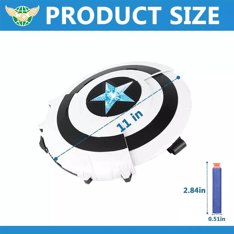 - 2-in-1 Design Functions both as a shield and a dart blaster. Inspired by superhero gear (similar to Captain America’s shield)